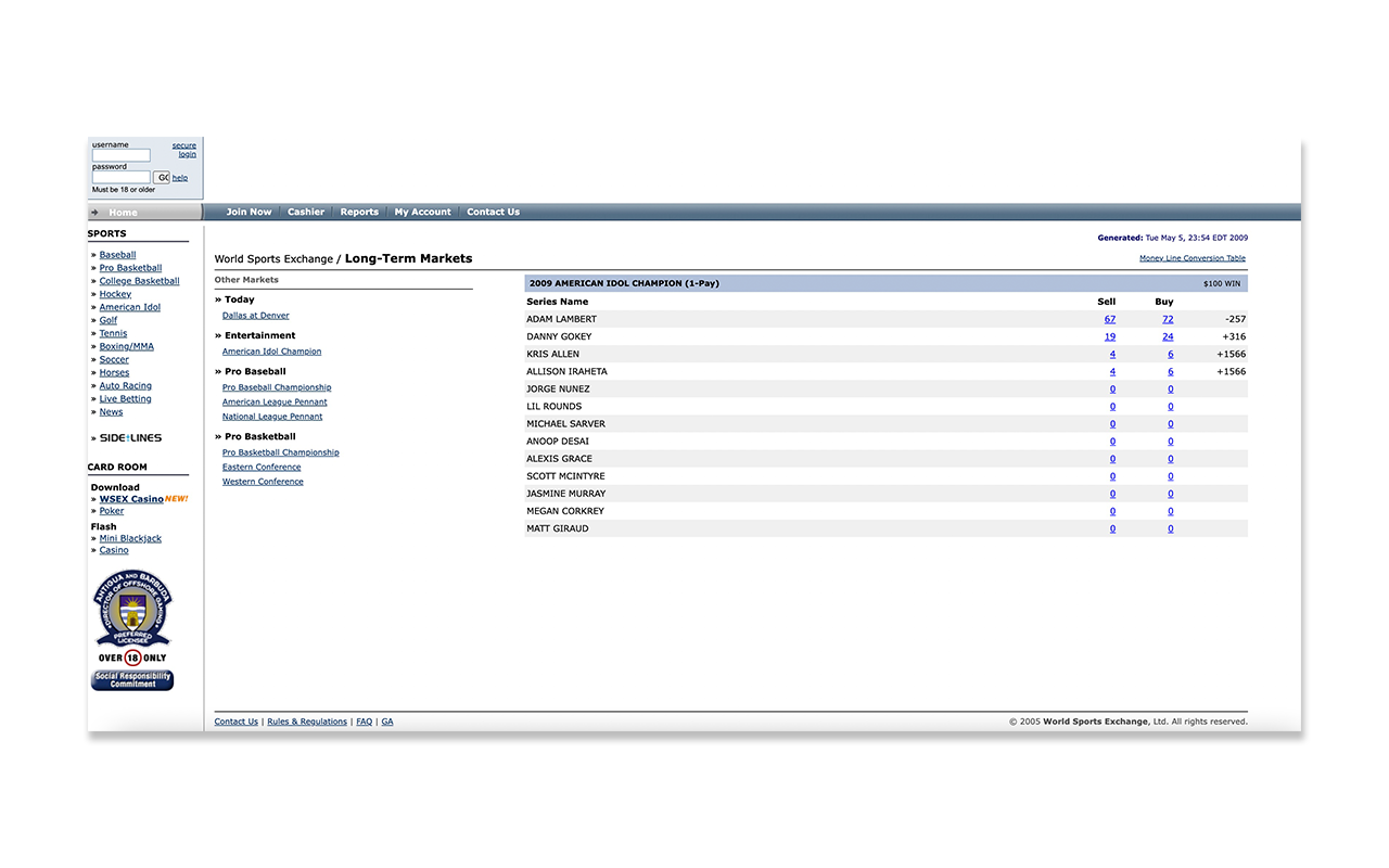 World Sports Exchange offered futures markets on everything including who would win American Idol